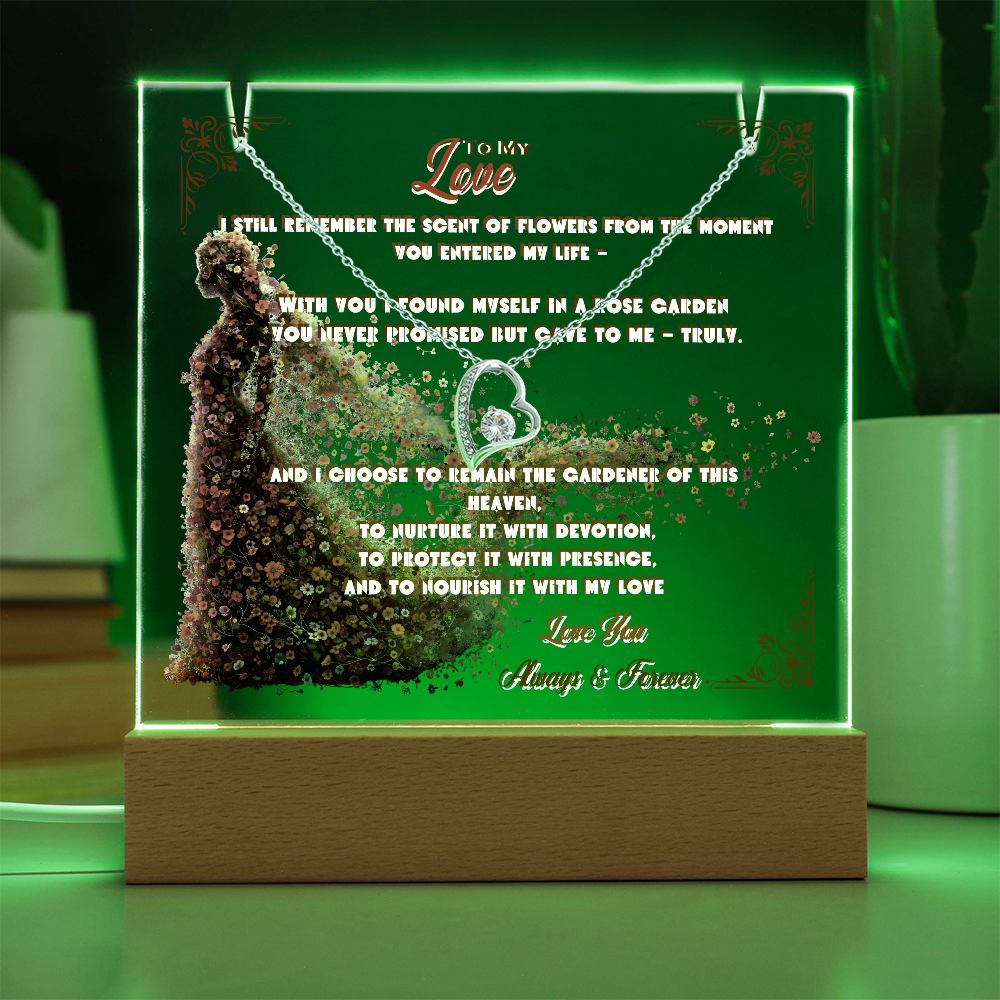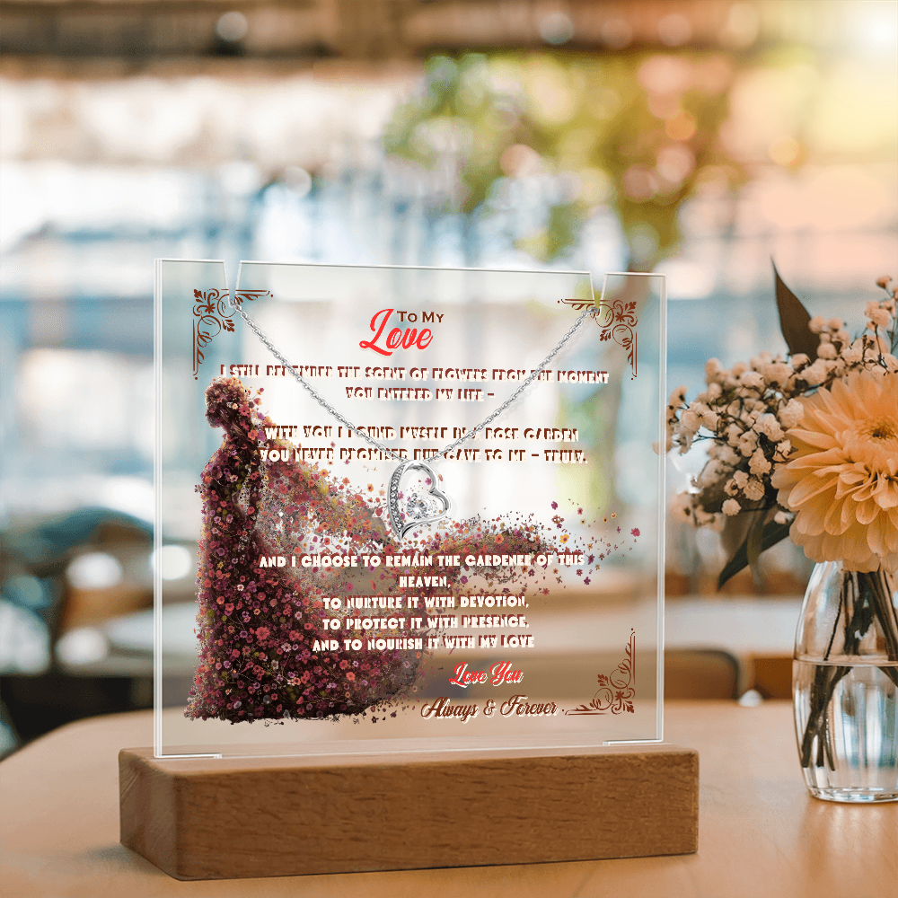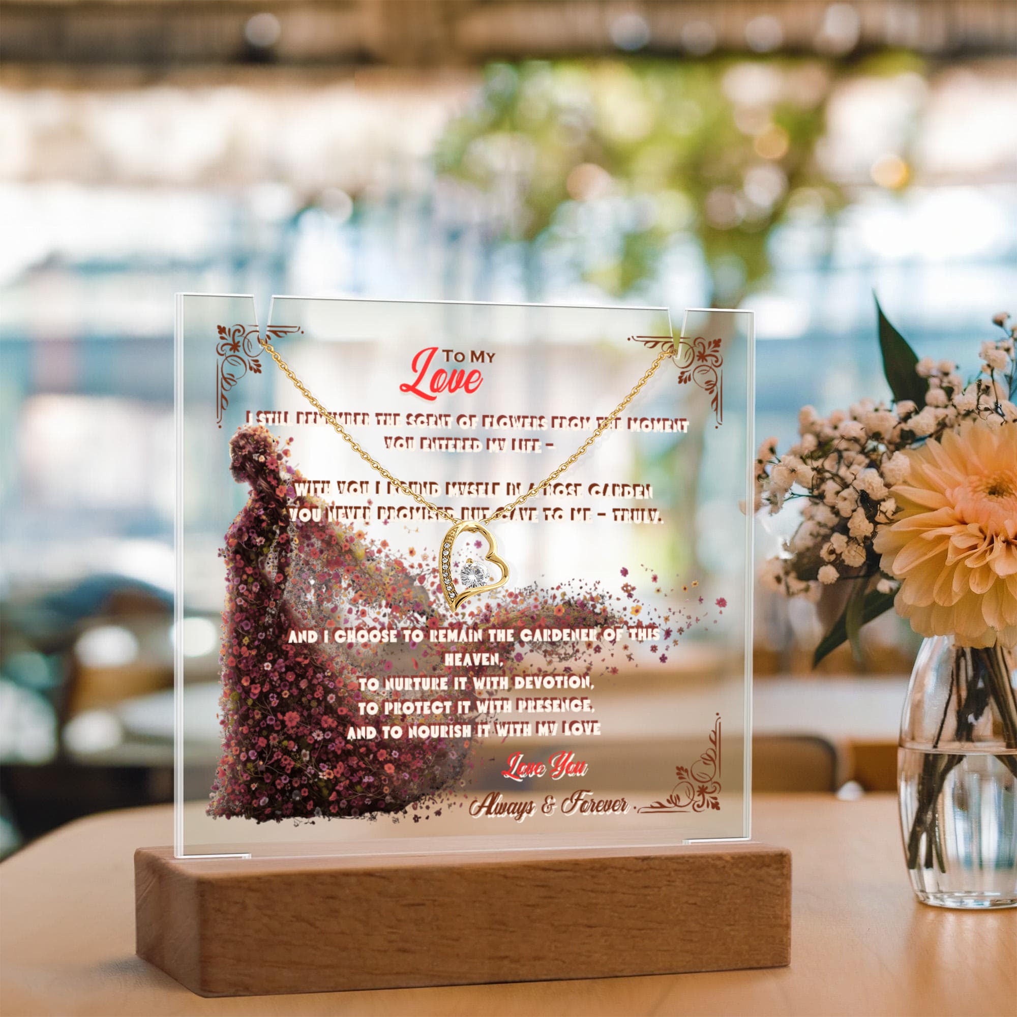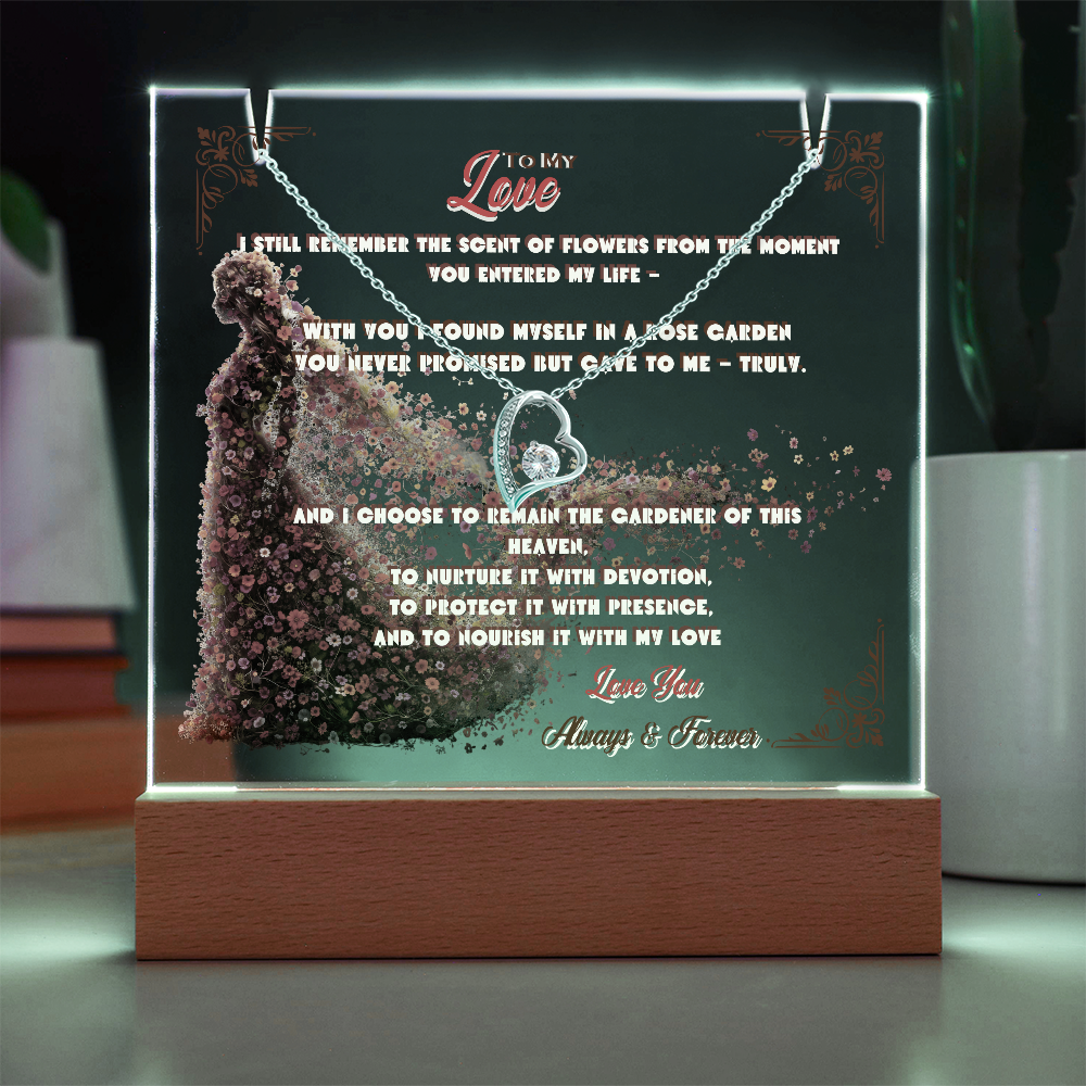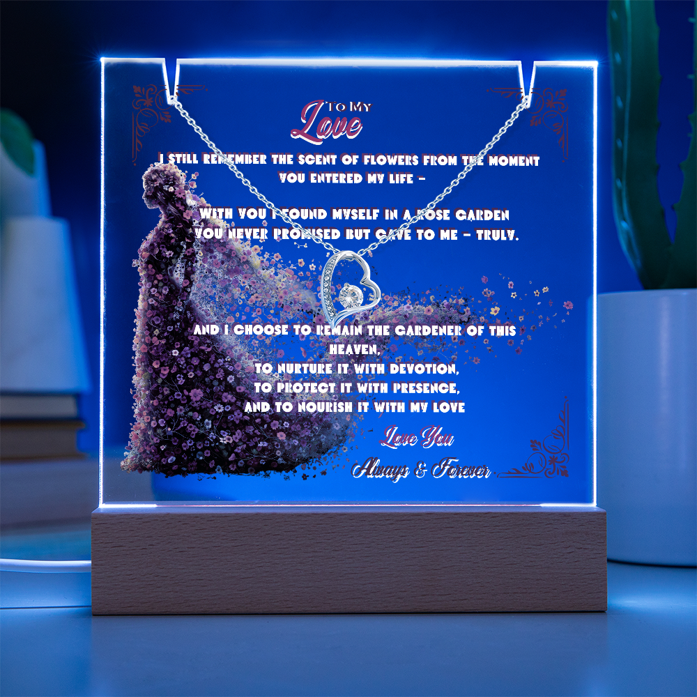 Surprise your LOVE with our elegant Keepsake Acrylic Bundle, featuring a stunning Square Acrylic and the beautiful Forever Love Necklace. Flower Garden design is showcased on crystal-clear acrylic, making this set a striking focal point in any space. Paired with the charming Forever Love Necklace, this bundle is the perfect gift for anniversaries, birthdays, Valentine's Day or any special occasion when you want to make a lasting impression.