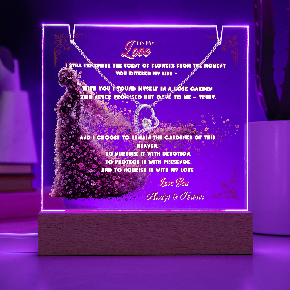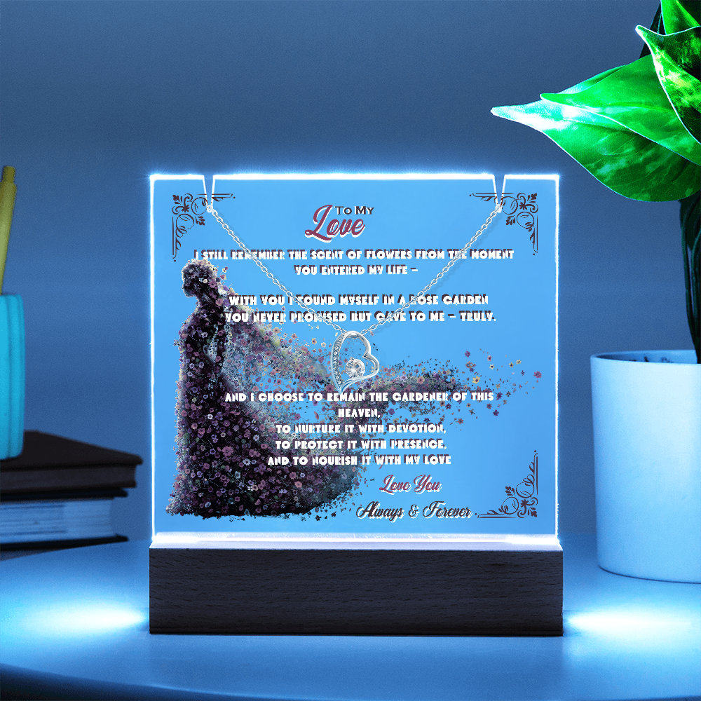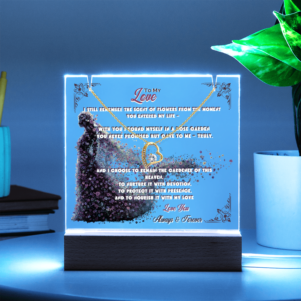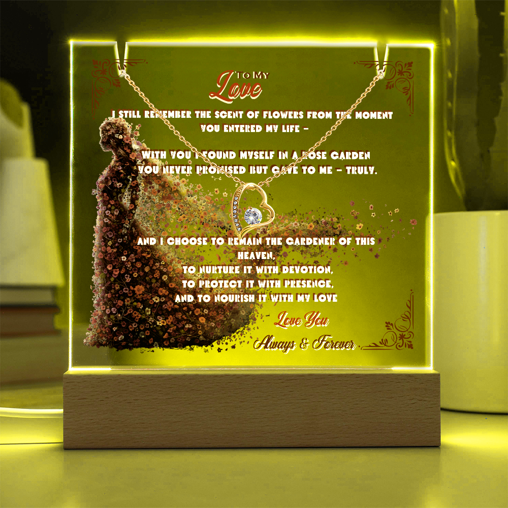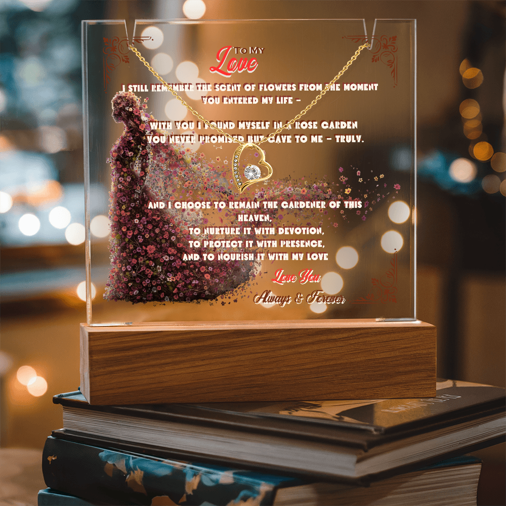 Surprise your LOVE with our elegant Keepsake Acrylic Bundle, featuring a stunning Square Acrylic and the beautiful Forever Love Necklace. Flower Garden design is showcased on crystal-clear acrylic, making this set a striking focal point in any space. Paired with the charming Forever Love Necklace, this bundle is the perfect gift for anniversaries, birthdays, Valentine's Day or any special occasion when you want to make a lasting impression.