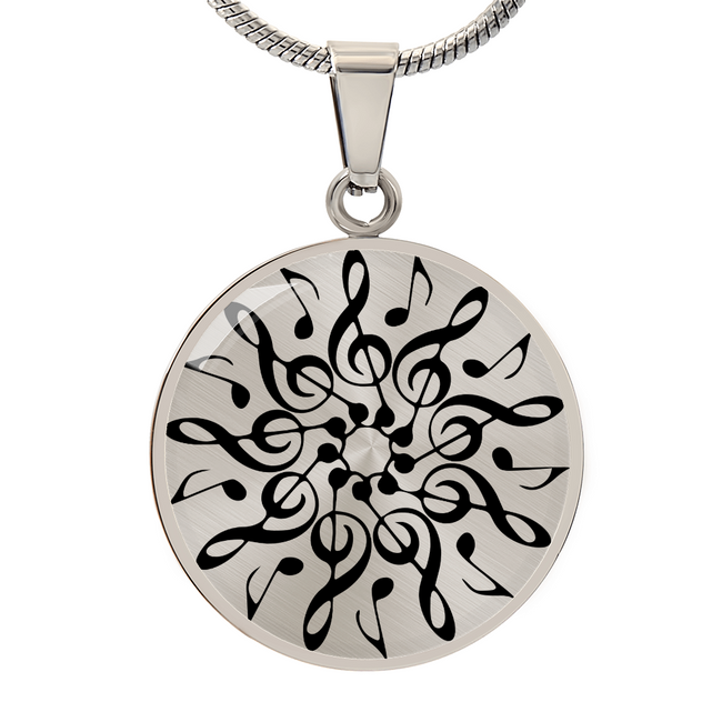 The music lover necklace is a beautifully crafted unisex jewelry piece designed to celebrate your passion for melodies and rhythm. This pendant necklace features intricate music symbols that make it the perfect music pendant gift for musicians, singers, and fans alike. Crafted from high-quality surgical steel with an optional 18k gold finish, this engraved music necklace offers durability and a lasting shine that complements any style. With a personalized engraving option on the back, you can add a special message, date, or name to create a truly personalized music gift that resonates with your heart.