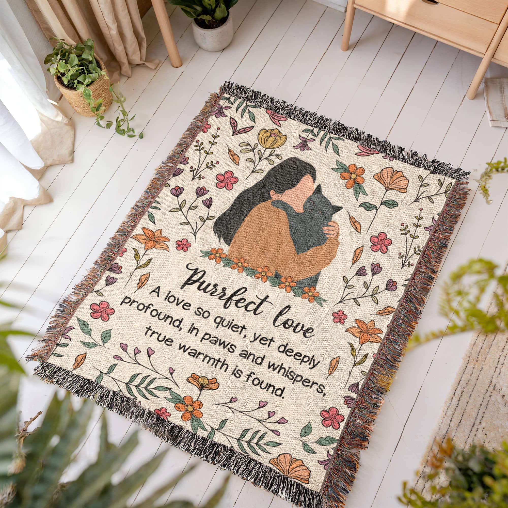 Purrfect Love Woven Blanket, Gift for Cat Moms on Mother's Day, Birthdaysor Just Because...