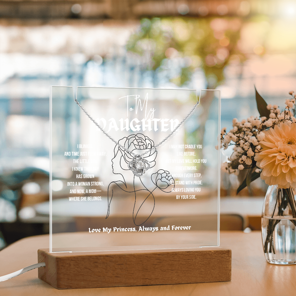 To My Daughter Love Knot Necklace With Keepsake Acrylic Led Lamp