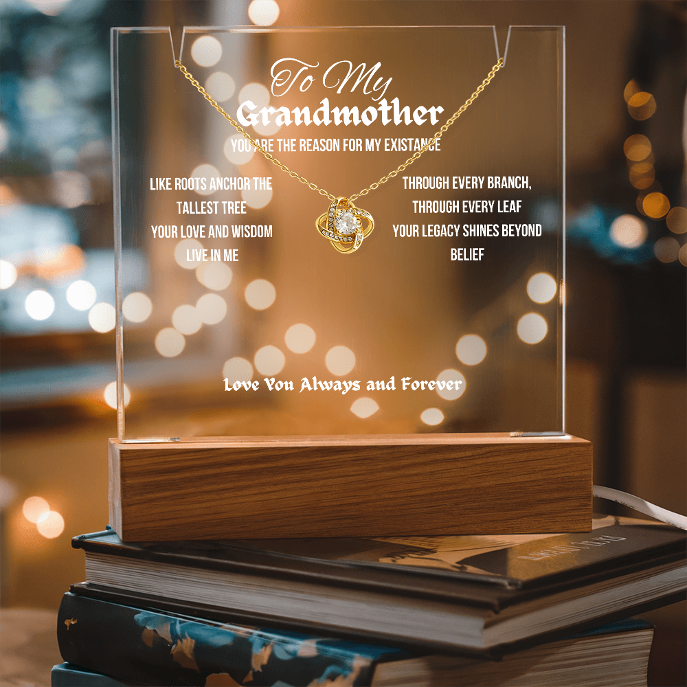 To My Grandmother Acrylic Led Lamp With Love Knot Necklace Gift For Mother's Day Birthday