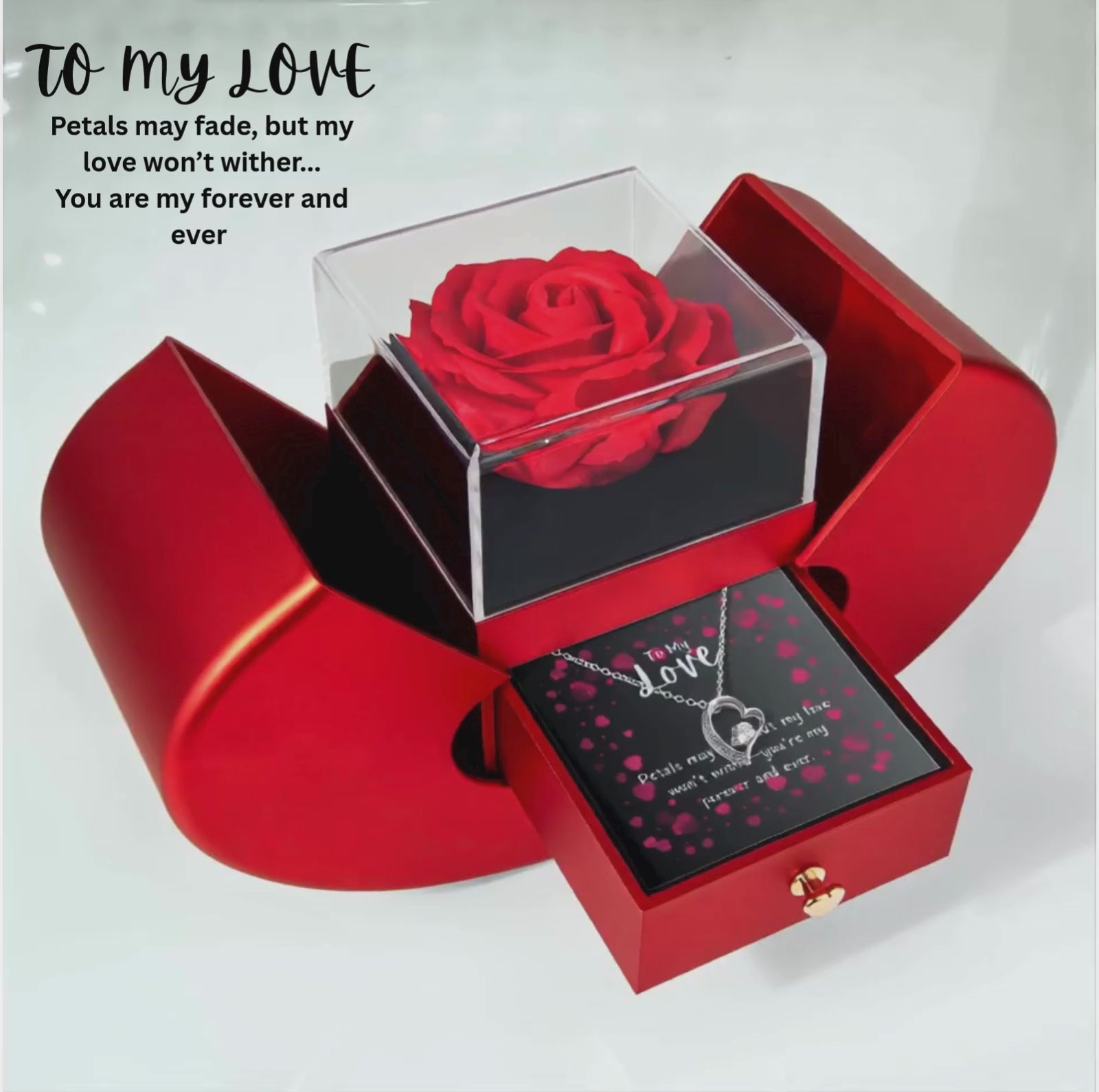 Forever Love Necklace - Heart Necklace With Rose Gift Box | Romantic Anniversary Gift