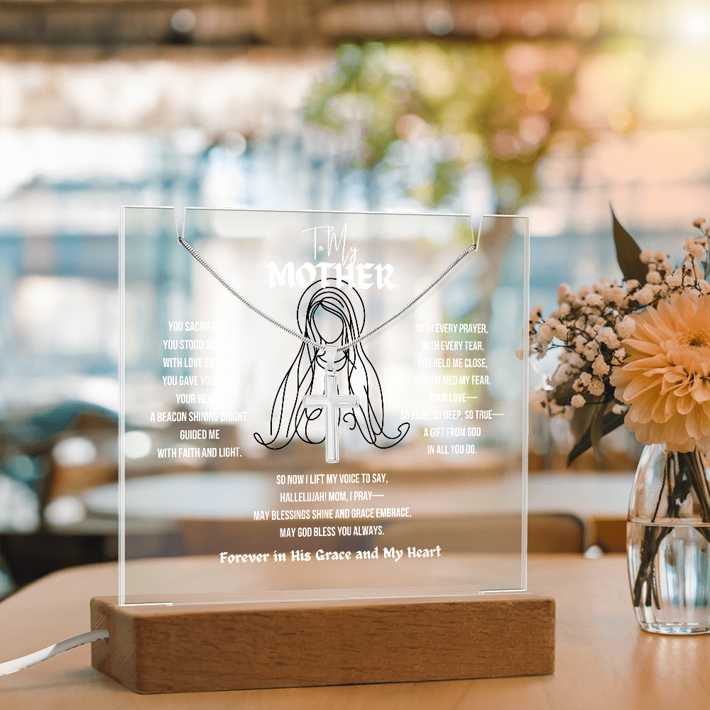 To My (Religious) Mom Cross Necklace With Acrylic Led Lamp