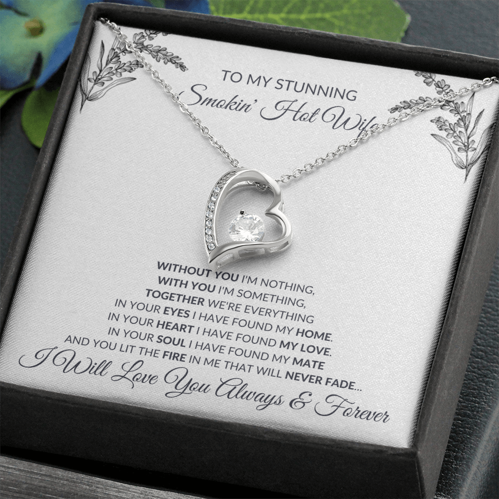 The forever love necklace is the perfect romantic jewelry gift designed to celebrate your stunning smoking hot wife and symbolize your eternal bond. Featuring a dazzling 6.5mm round cut cubic zirconia stone set in a heart pendant necklace, this sparkling crystal pendant delivers both elegance and meaningful sentiment. Crafted with a choice of 14k white gold finish or 18k yellow gold jewelry, this gold finish necklace combines timeless style with lasting shine to create a love gift for her that she can treasure every day.