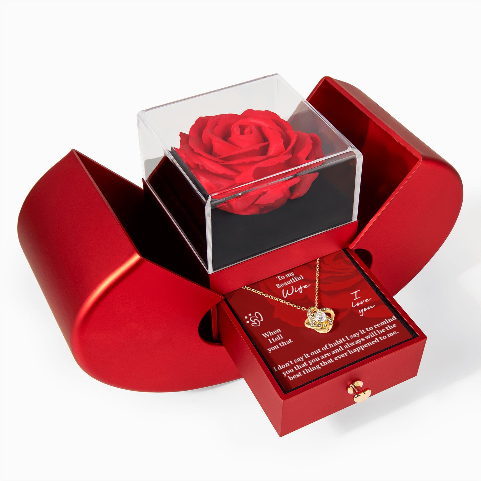 Surprise her with the Rose & Love Knot Gift Set—featuring an eternal rose, a stunning Love Knot Necklace, and a heartfelt message card. Elegant, symbolic, and ready to gift for birthdays, proposals, Mother’s Day, or any moment you want her to feel deeply loved.